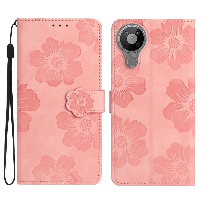 Για Nokia 5.3 λουλούδι ανάγλυφο μοτίβο δερμάτινη θήκη τηλεφώνου (ροζ)