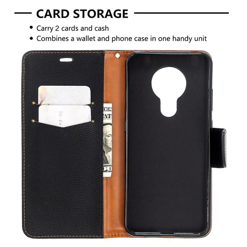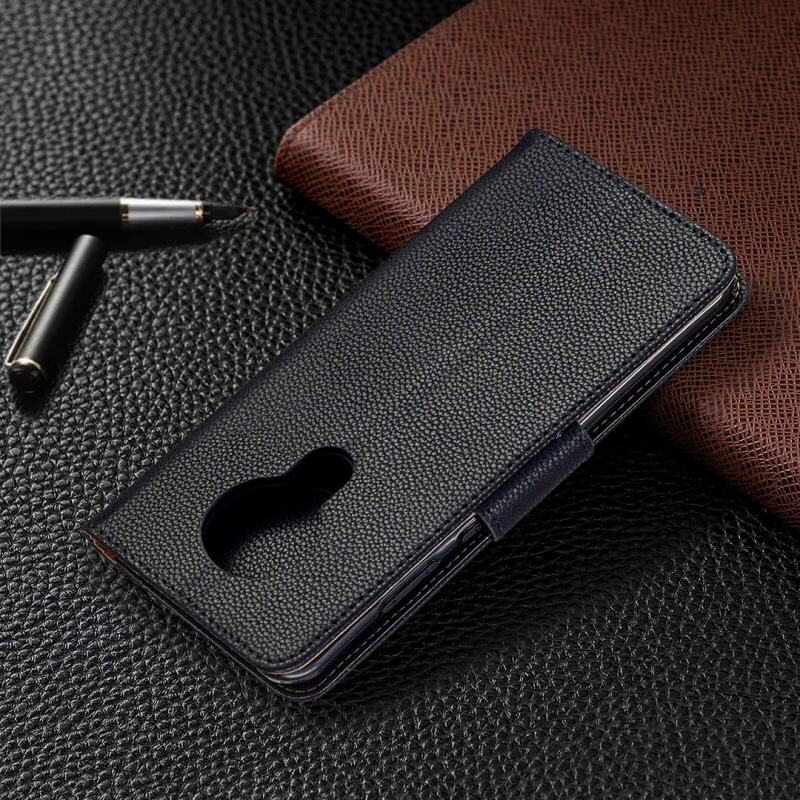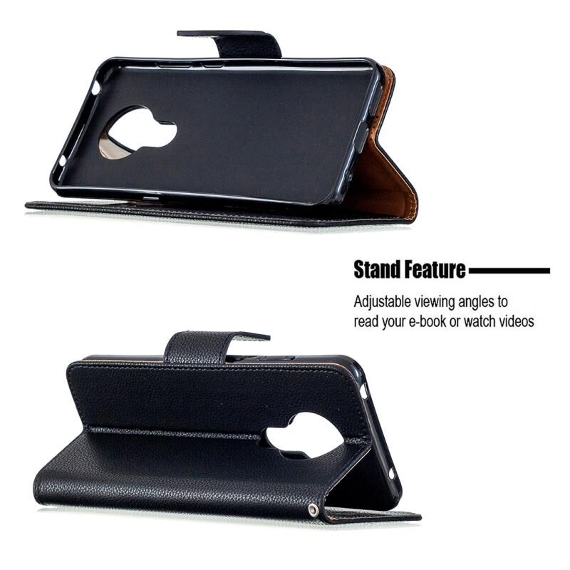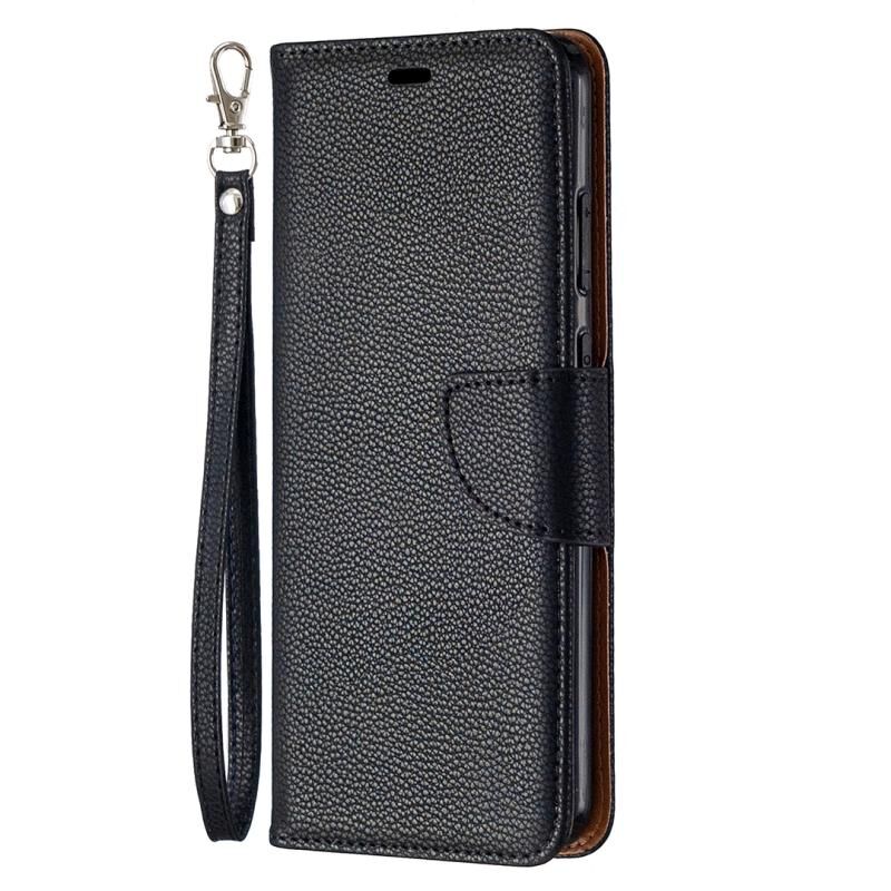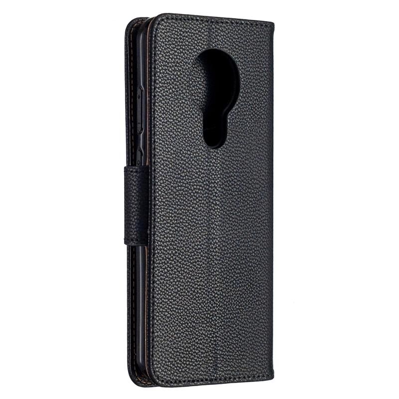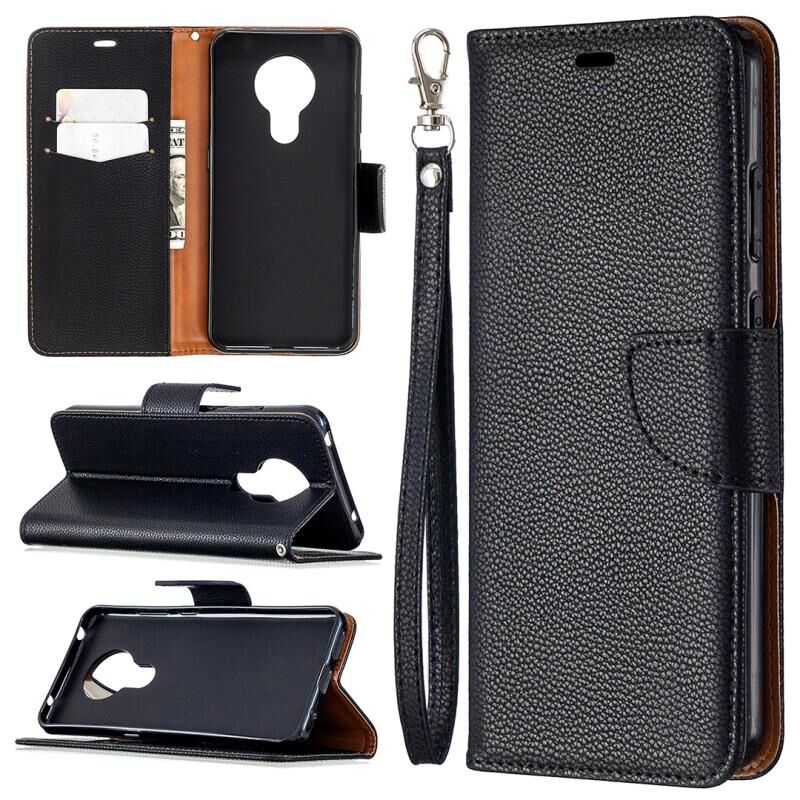 Για Nokia 5.3 Litchi υφή καθαρό χρώμα οριζόντια Flip δερμάτινη θήκη με θήκη & υποδοχές για κάρτες & πορτοφόλι & κορδόνι (μαύρο)