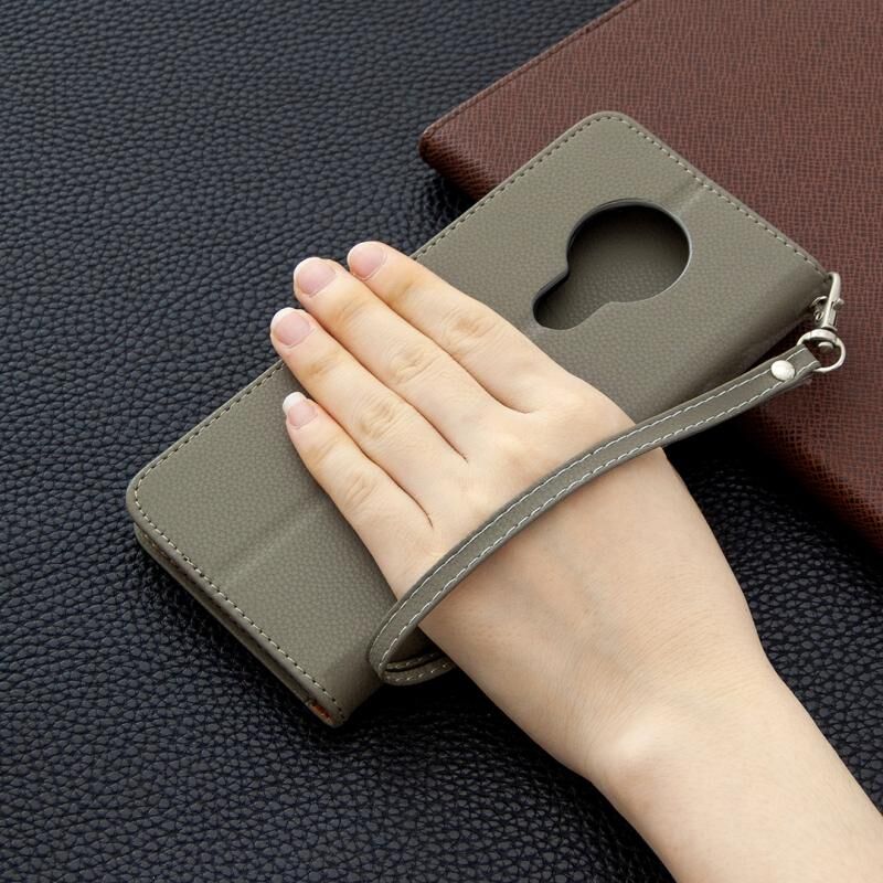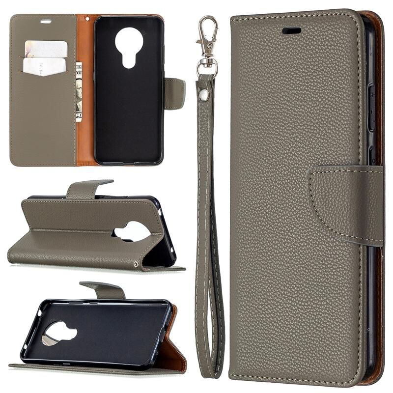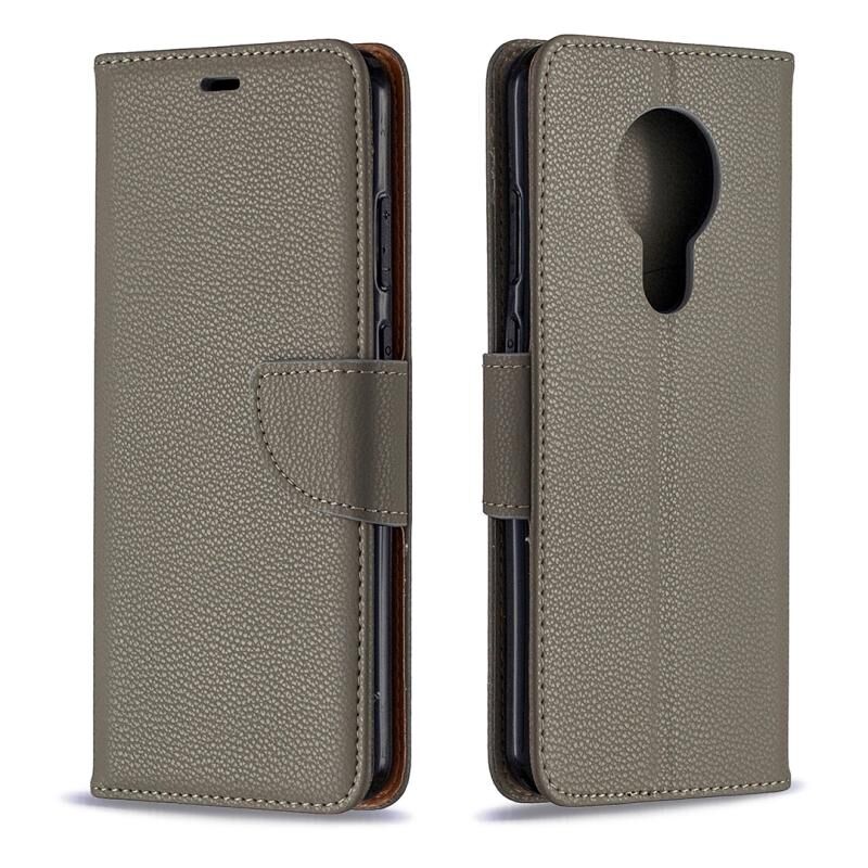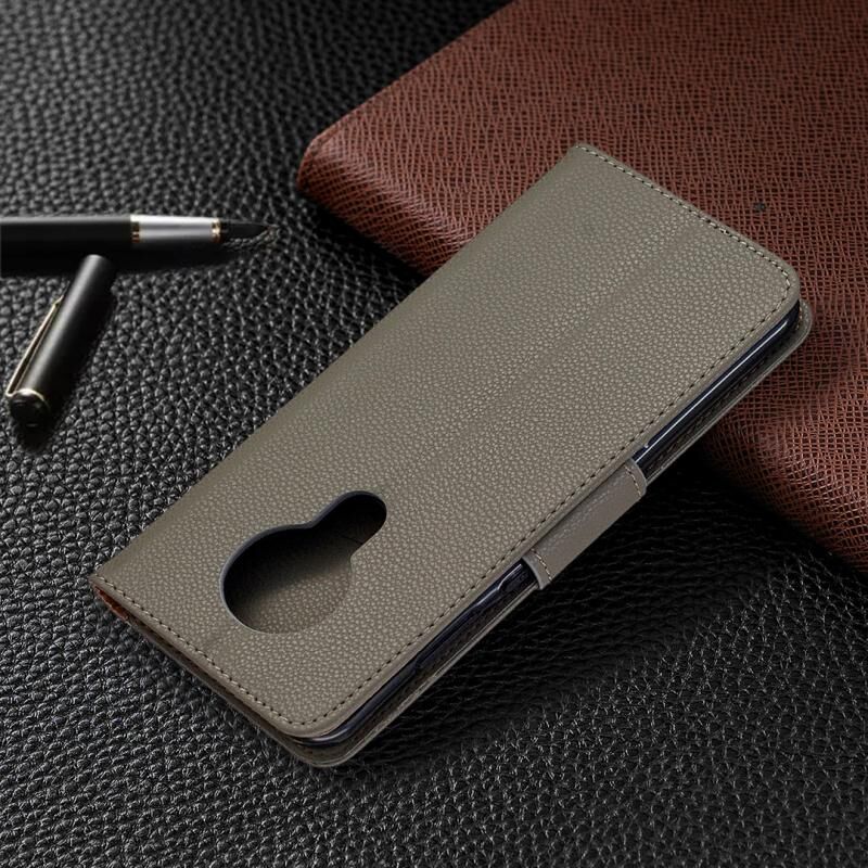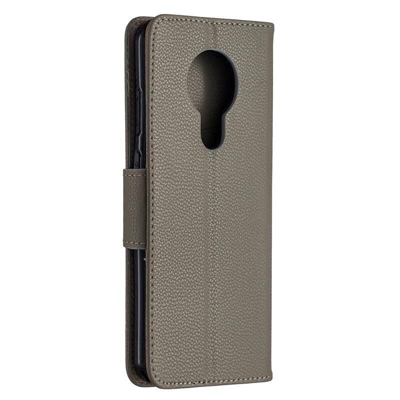 Για Nokia 5.3 Litchi Texture Pure Color Οριζόντια Flip δερμάτινη θήκη με θήκη & υποδοχές για κάρτες & πορτοφόλι & κορδόνι (γκρι)