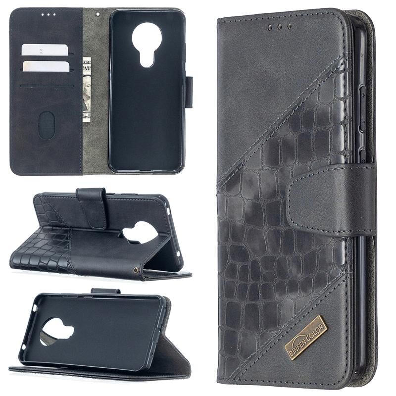 Για Nokia 5.3 Ασορτί χρώμα κροκόδειλος υφή οριζόντια Flip PU δέρμα υπόθεση με πορτοφόλι & κάτοχος & υποδοχές για κάρτες (μαύρο)