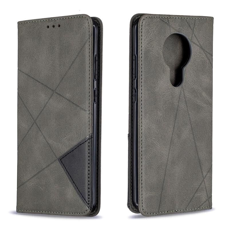 Για Nokia 5.3 Rhombus υφή οριζόντια Flip μαγνητική δερμάτινη θήκη με θήκη & υποδοχές για κάρτες & πορτοφόλι (γκρι)