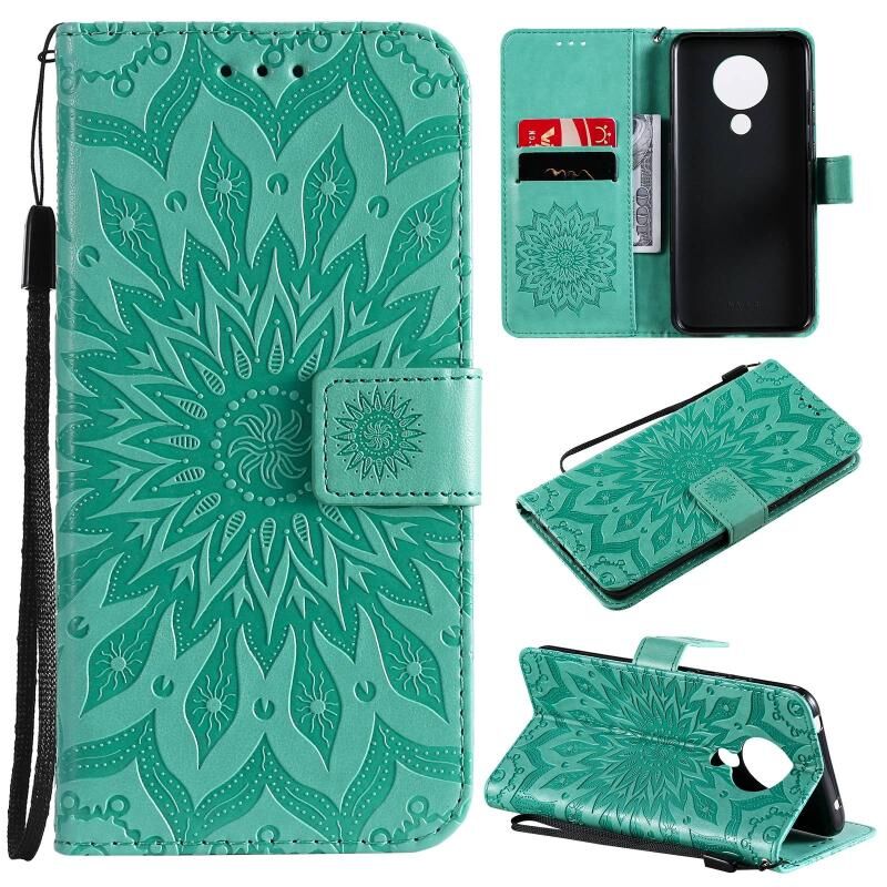 Για Nokia 5.3 Sun ανάγλυφο μοτίβο οριζόντια Flip δερμάτινη θήκη με υποδοχή για κάρτες & κάτοχος & πορτοφόλι & κορδόνι (πράσινο)