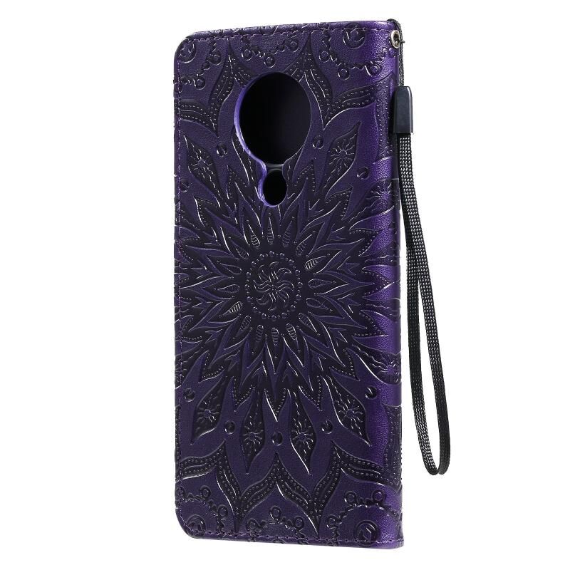 Για Nokia 5.3 Sun ανάγλυφο μοτίβο οριζόντια Flip δερμάτινη θήκη με υποδοχή για κάρτες & κάτοχος & πορτοφόλι & κορδόνι (μωβ)