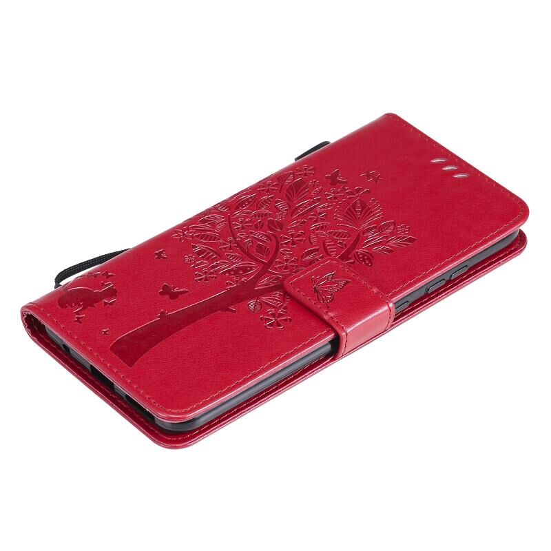 Για το Nokia 5.3 Tree & Cat Pattern Pressed Printing Horizontal Flip PU Leather Case με θήκη & υποδοχές για κάρτες & πορτοφόλι & κορδόνι (κόκκινο)