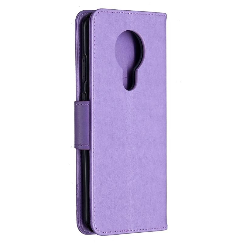 Για Nokia 5.3 Δύο πεταλούδες ανάγλυφο μοτίβο οριζόντια Flip δερμάτινη θήκη με κάτοχο & υποδοχή για κάρτες & πορτοφόλι & κορδόνι (μωβ)