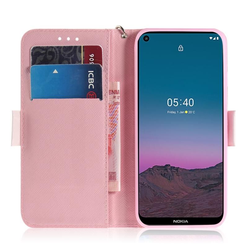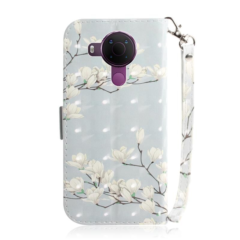 Θήκη δέρματος οριζόντιας αναδίπλωσης με μαγνητική έλξη και τρισδιάστατο σχέδιο για Nokia 5.4, με βάση στήριξης, θήκη για κάρτες, πορτοφόλι και κορδόνι (Μαγνολία)