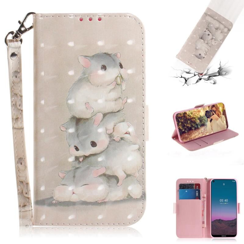 Θήκη δέρματος οριζόντιας αναδίπλωσης με μαγνητική έλξη και τρισδιάστατο σχέδιο για Nokia 5.4, με βάση στήριξης, θήκη για κάρτες, πορτοφόλι και κορδόνι (Σκιουράκια)