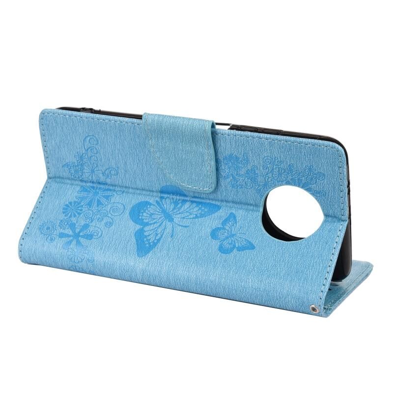 Θήκη δέρματος οριζόντιας αναδίπλωσης για Nokia 5.4 με σχέδιο πεταλούδων, ανάγλυφο, με βάση & υποδοχές καρτών & πορτοφόλι (Καφέ)