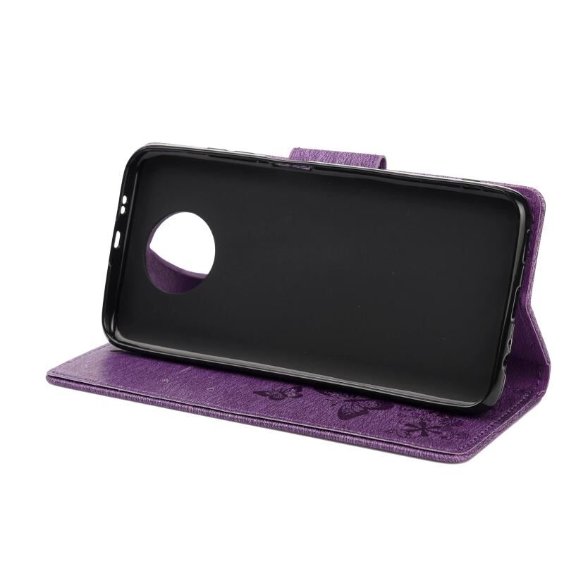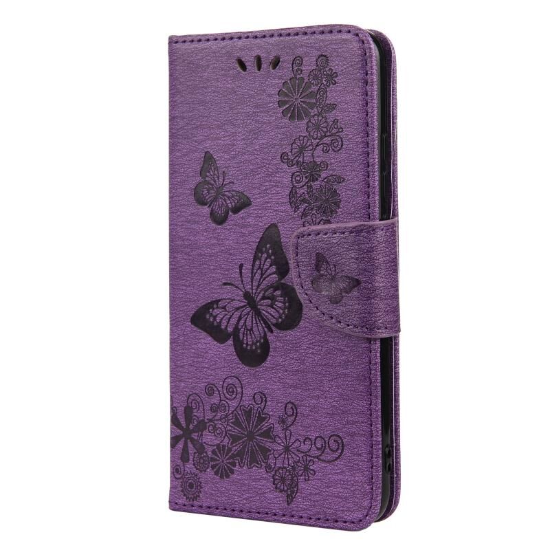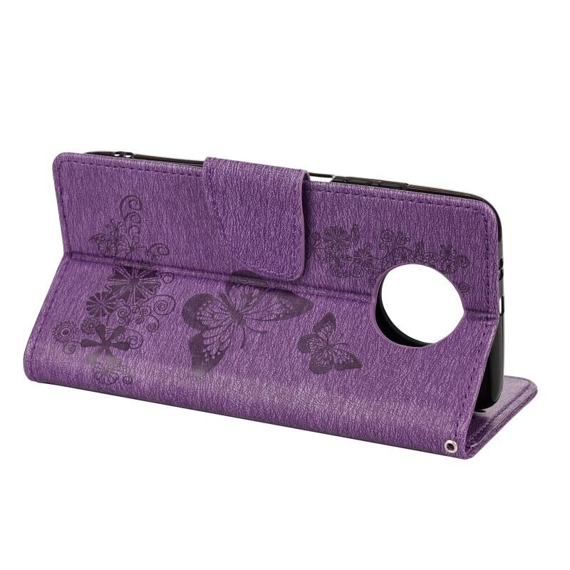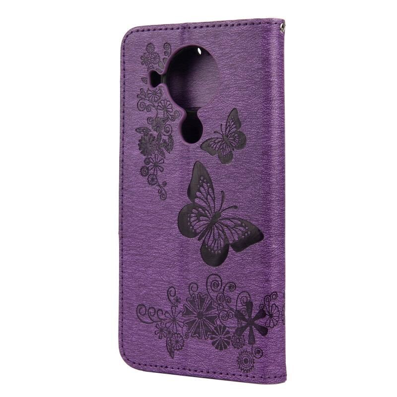 Θήκη δέρματος οριζόντιας αναδίπλωσης για Nokia 5.4 με σχέδιο πεταλούδων, ανάγλυφο, με βάση & υποδοχές καρτών & πορτοφόλι (Καφέ)