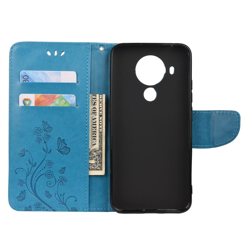 For Nokia 5.4 Butterfly Flower Pattern Horizontal Flip Leather Case with Holder & Card Slots & Wallet(Blue)