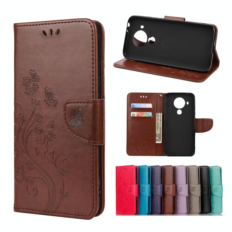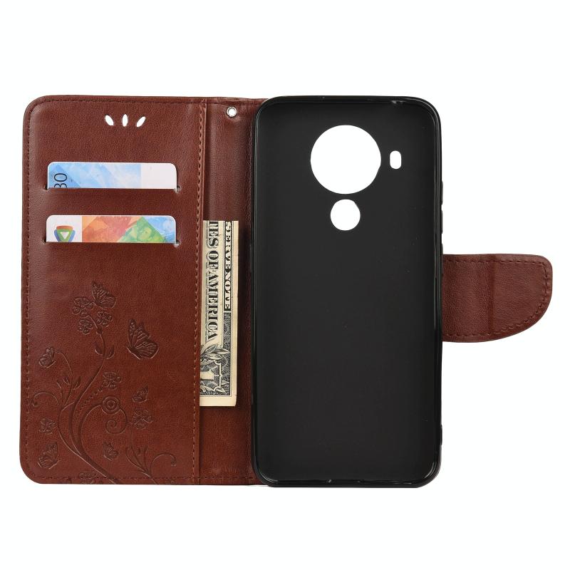 For Nokia 5.4 Butterfly Flower Pattern Horizontal Flip Leather Case with Holder & Card Slots & Wallet(Brown)