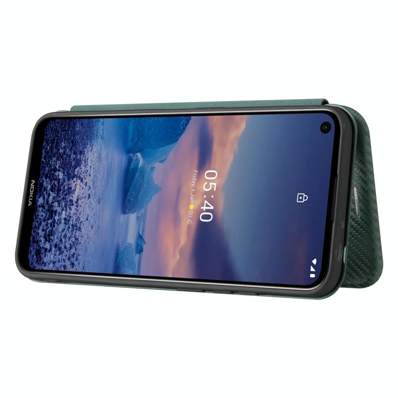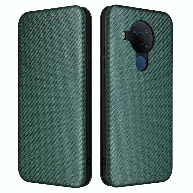 For Nokia 5.4 Carbon Fiber Texture Horizontal Flip TPU + PC + PU Leather Case with Card Slot(Green)