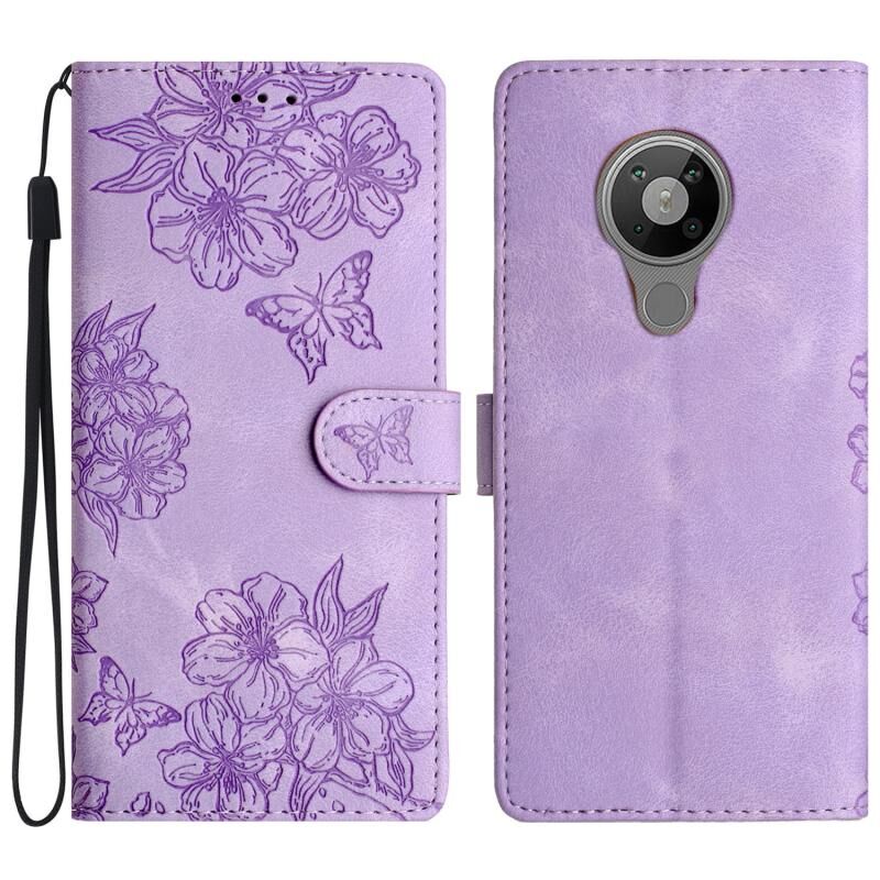 Θήκη τηλεφώνου Nokia 5.4 Cherry Blossom Butterfly Skin Feel Embossed PU (Κόκκινη)