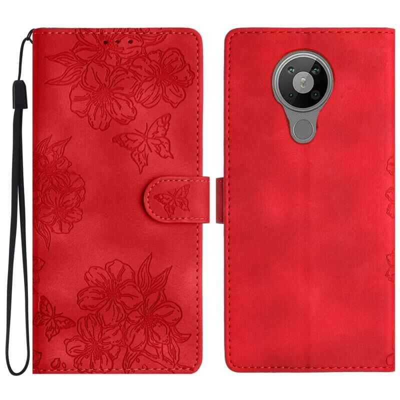 Θήκη τηλεφώνου Nokia 5.4 Cherry Blossom Butterfly Skin Feel Embossed PU (Κόκκινη)