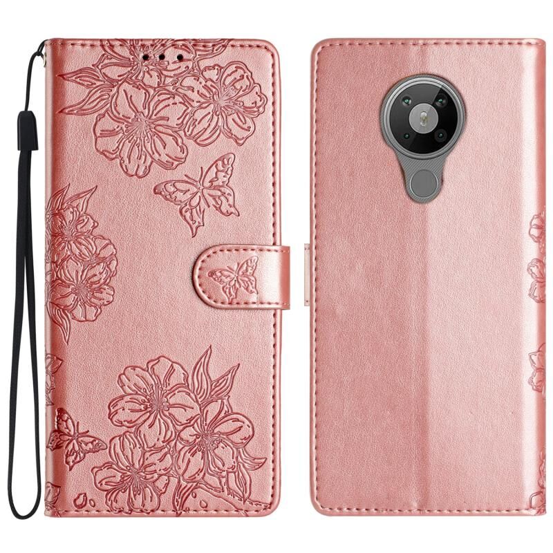 Θήκη τηλεφώνου Nokia 5.4 Cherry Blossom Butterfly Skin Feel Embossed PU (Κόκκινη)