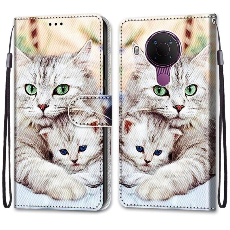Θήκη δερματίνης PU με σχέδιο σταυρωτής υφής, οριζόντιο άνοιγμα, για Nokia 5.4 με βάση στήριξης, θήκες καρτών, πορτοφόλι & λουρί (Μεγάλη γάτα που κρατάει γατάκι)