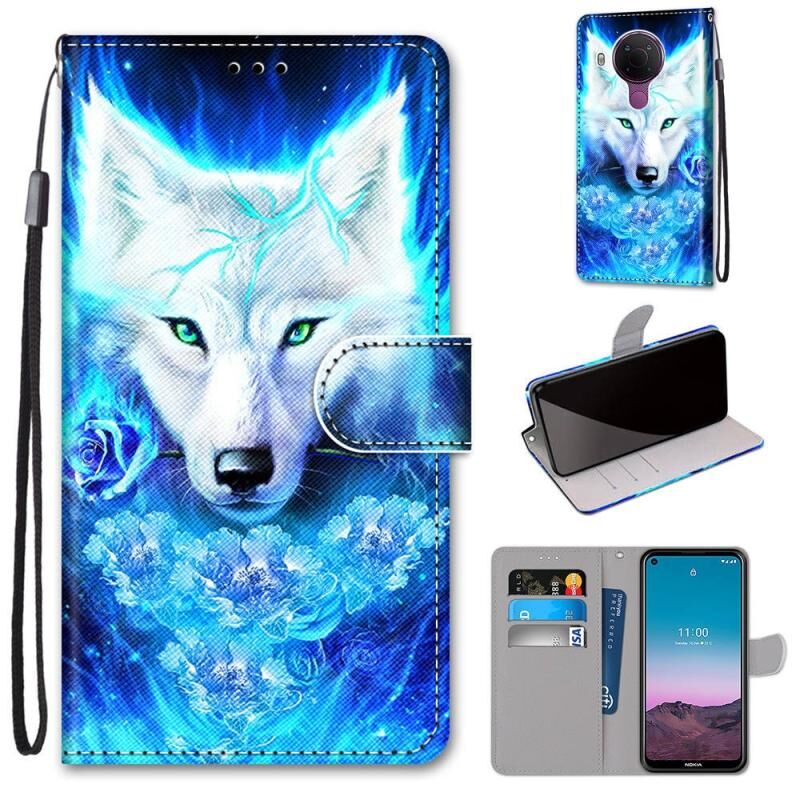 Θήκη δερματίνης PU με σχέδιο σταυρωτής υφής, οριζόντιο άνοιγμα, για Nokia 5.4 με βάση στήριξης, θήκες καρτών, πορτοφόλι & λουρί (Dick Rose Wolf)