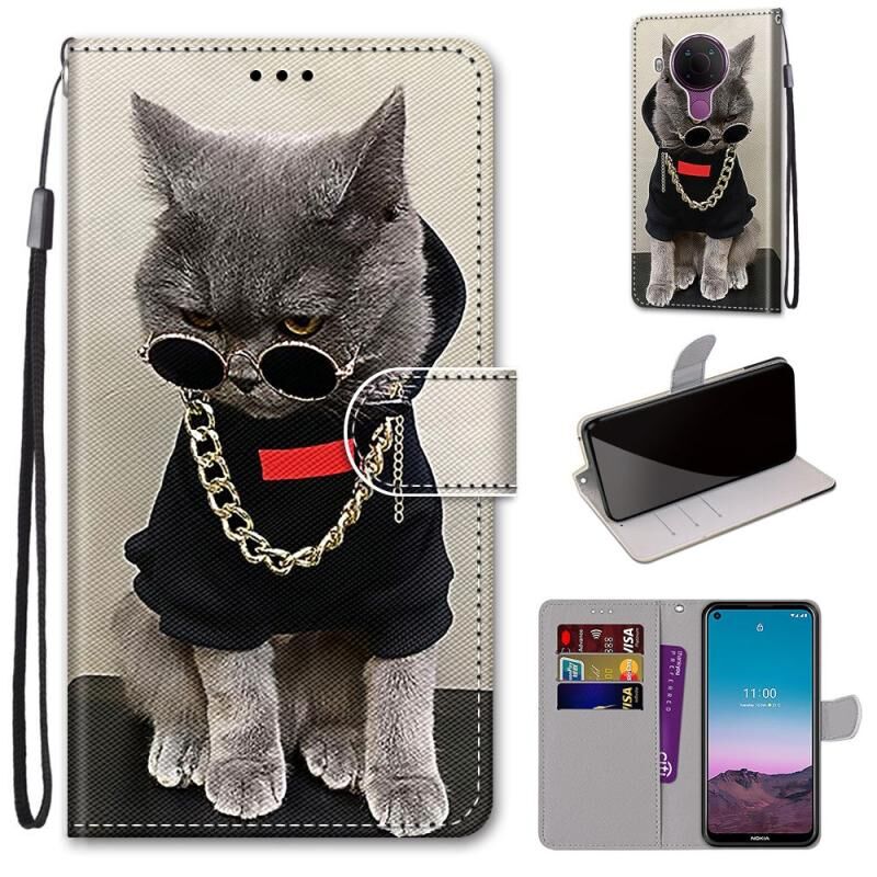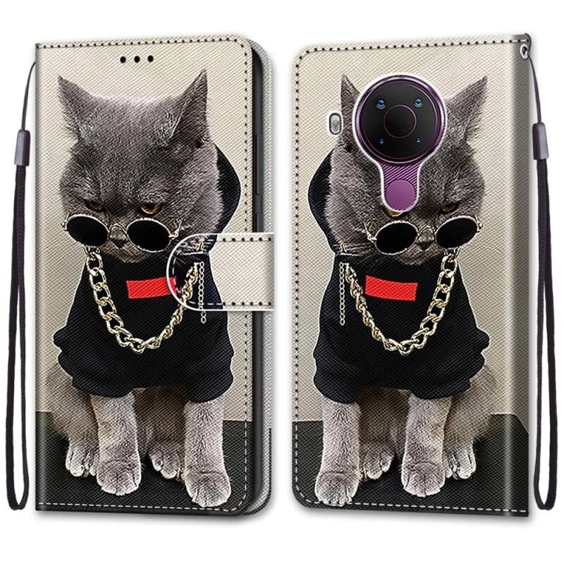 Θήκη δερματίνης PU με σχέδιο σταυρωτής υφής, οριζόντιο άνοιγμα, για Nokia 5.4 με βάση στήριξης, θήκες καρτών, πορτοφόλι & λουρί (Λευκό Γατάκι)