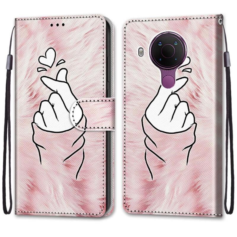 Θήκη δερματίνης PU με σχέδιο σταυρωτής υφής, οριζόντιο άνοιγμα, για Nokia 5.4 με βάση στήριξης, θήκες καρτών, πορτοφόλι & λουρί (Λευκό Γατάκι)