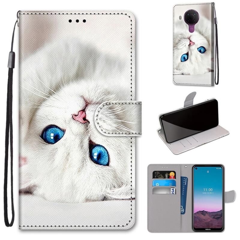 Θήκη δερματίνης PU με σχέδιο σταυρωτής υφής, οριζόντιο άνοιγμα, για Nokia 5.4 με βάση στήριξης, θήκες καρτών, πορτοφόλι & λουρί (Λευκό Γατάκι)