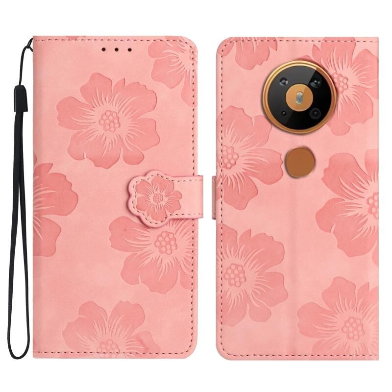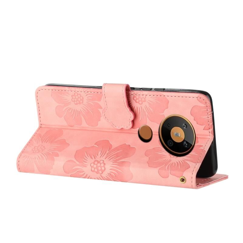 Για Nokia 5.4 λουλούδι ανάγλυφο μοτίβο δερμάτινη θήκη τηλεφώνου (ροζ)