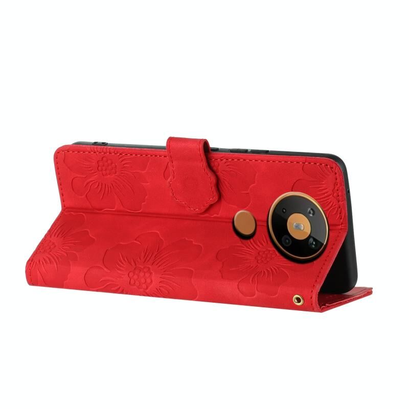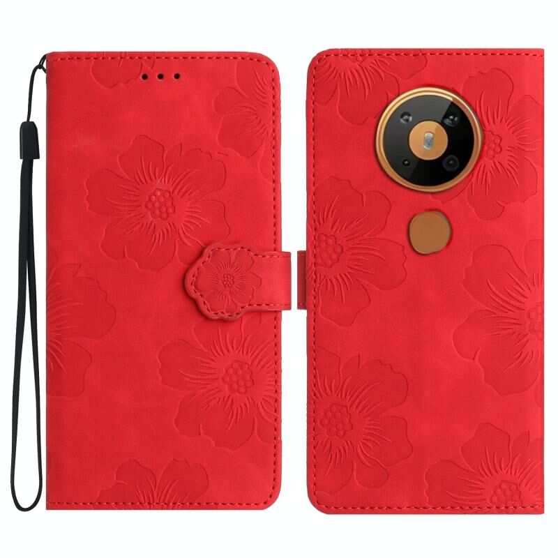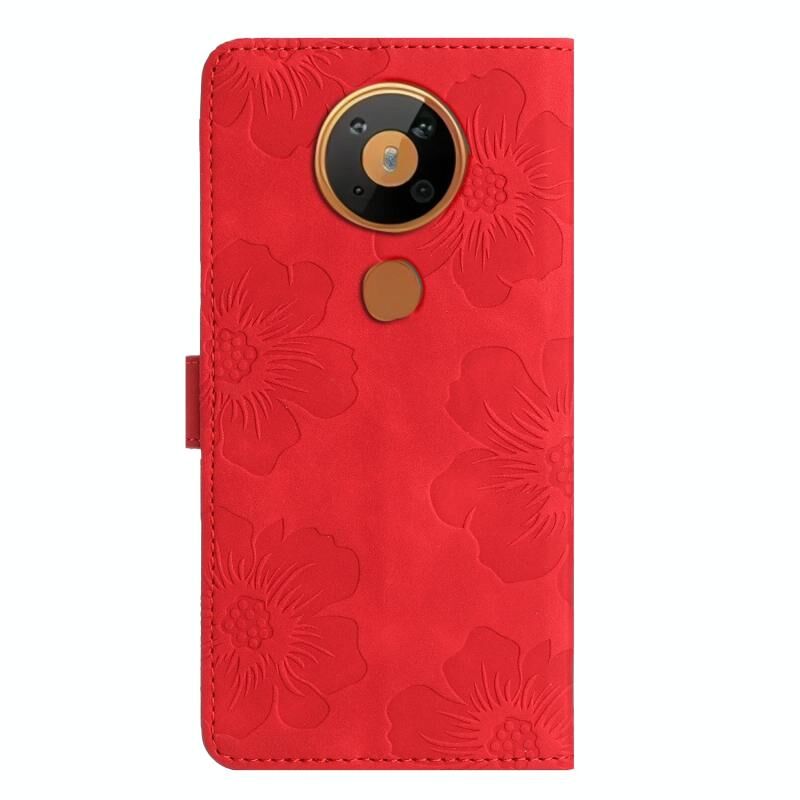 Για Nokia 5.4 λουλούδι ανάγλυφο μοτίβο δερμάτινη θήκη τηλεφώνου (κόκκινο)