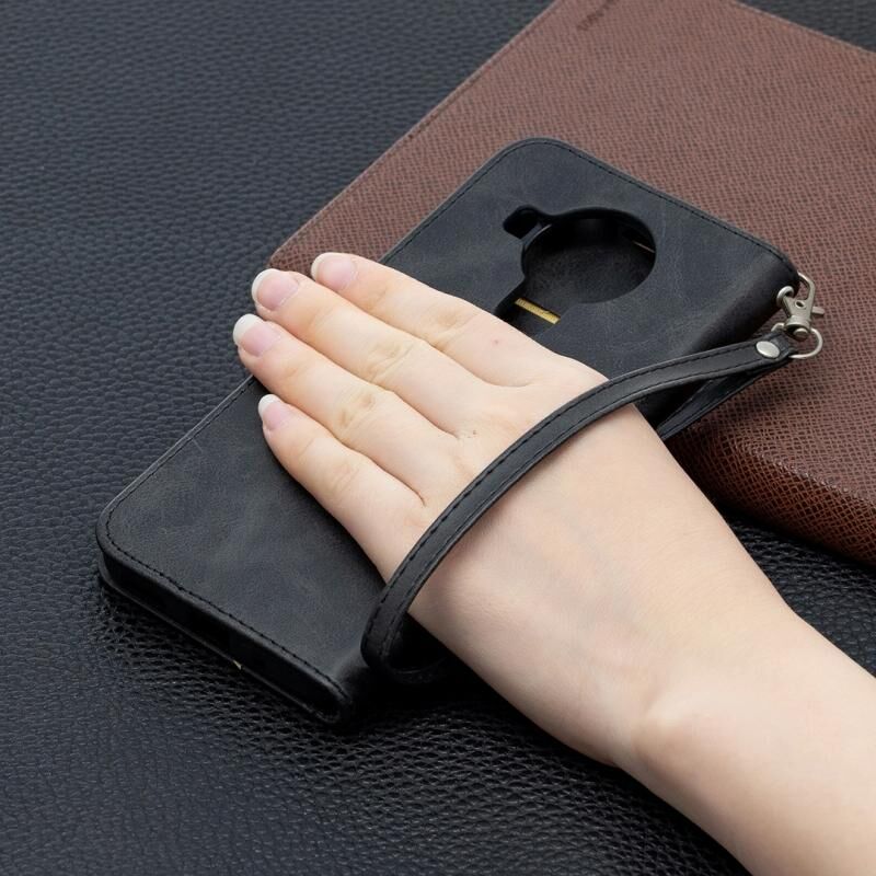 Για Nokia 5.4 Retro Lambskin υφή καθαρό χρώμα οριζόντια Flip PU δέρμα υπόθεση με θήκη & υποδοχές για κάρτες & πορτοφόλι & κορδόνι (μαύρο)