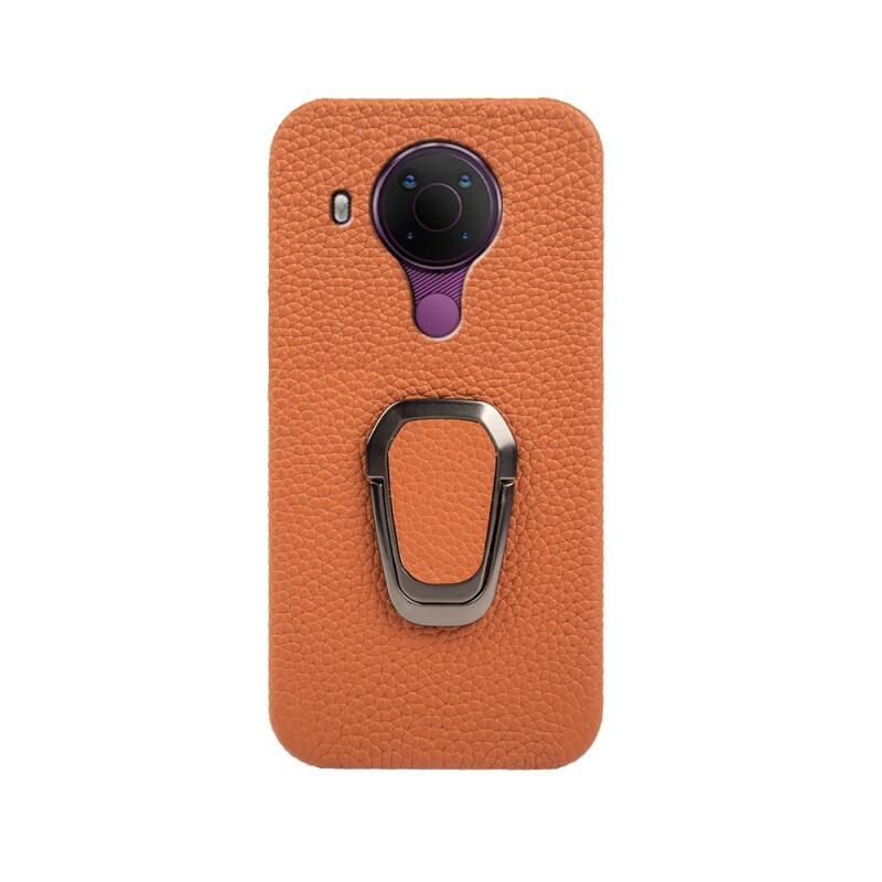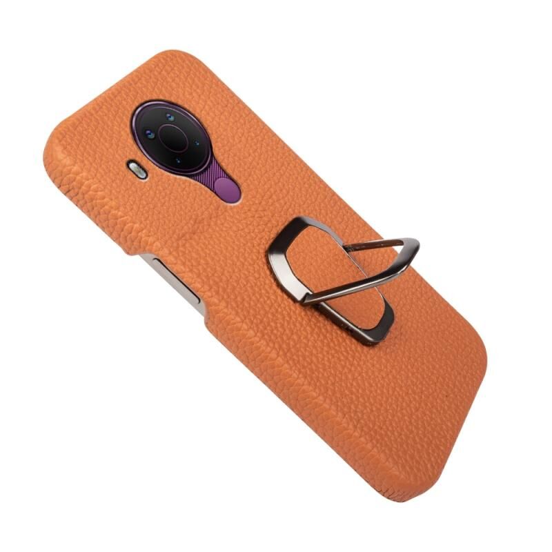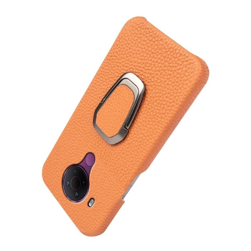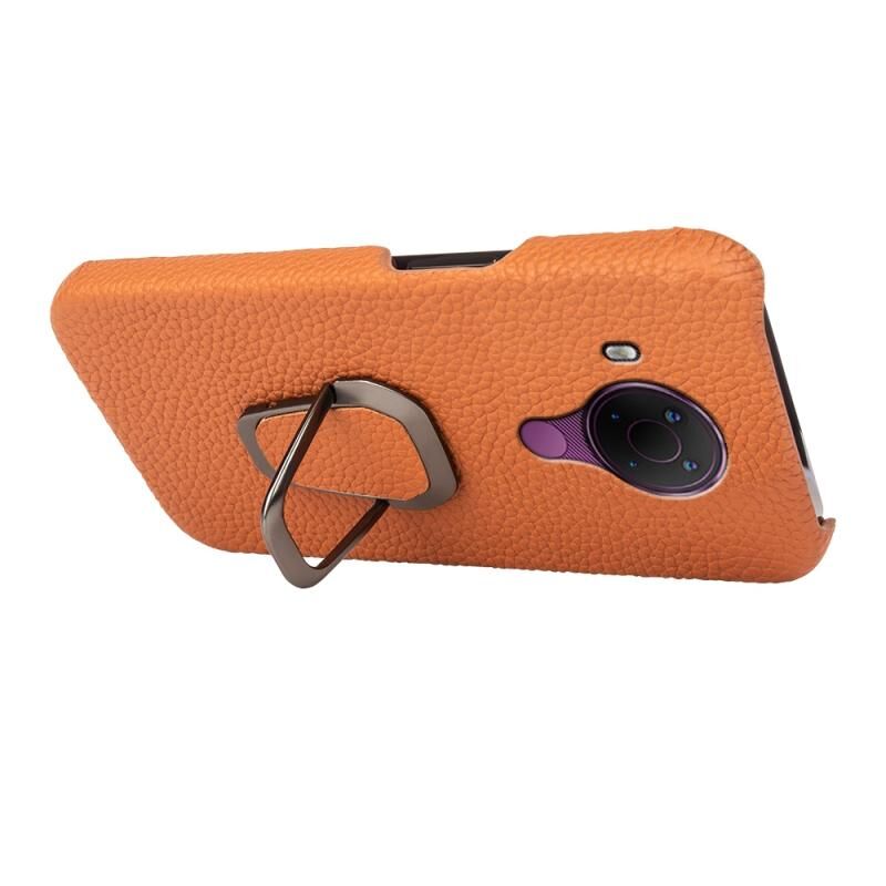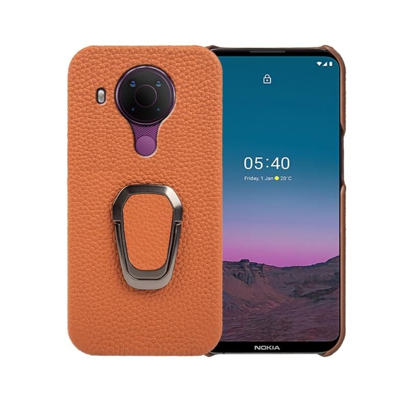 Για Nokia 5.4 Δακτύλιος κάτοχος Litchi Υφή γνήσιο δέρμα τηλέφωνο υπόθεση (καφέ)