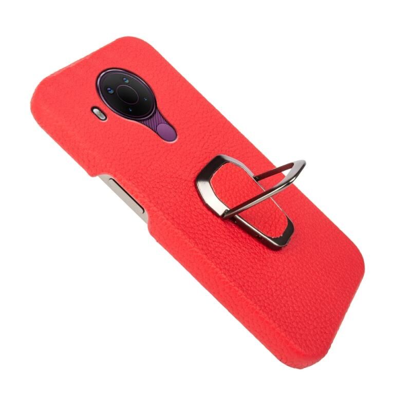 Για Nokia 5.4 Δακτύλιος κάτοχος Litchi υφή γνήσιο δέρμα τηλέφωνο υπόθεση (κόκκινο)