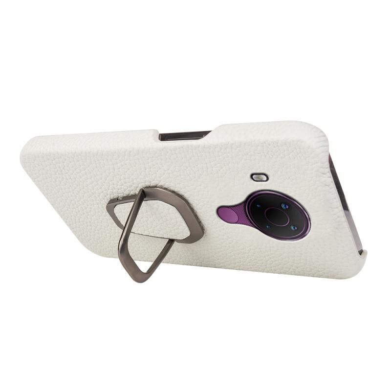Για Nokia 5.4 Ring Holder Litchi Υφή γνήσιο δέρμα τηλέφωνο υπόθεση (λευκό)