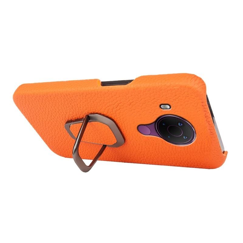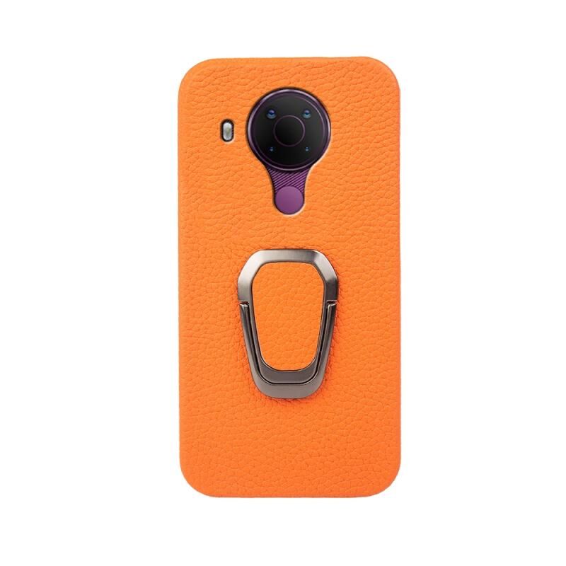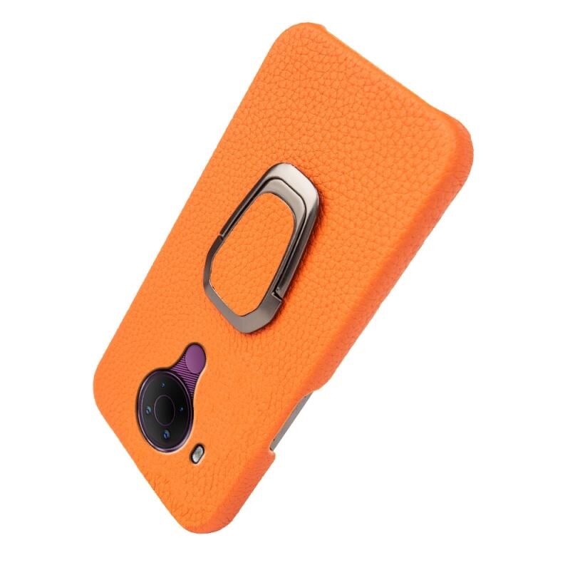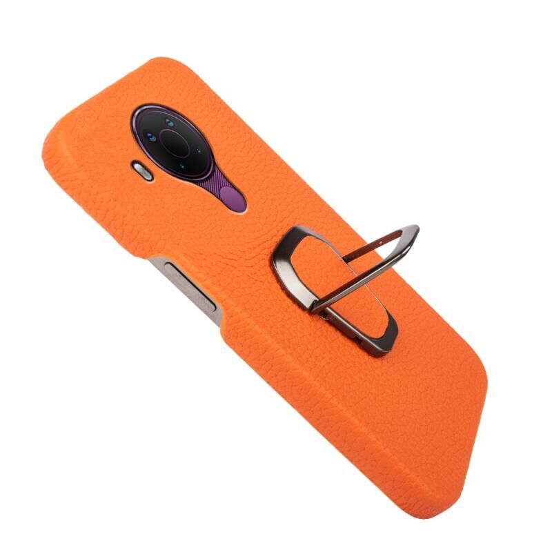 Για Nokia 5.4 Ring Holder Litchi Υφή γνήσιο δέρμα τηλέφωνο υπόθεση (κίτρινο)