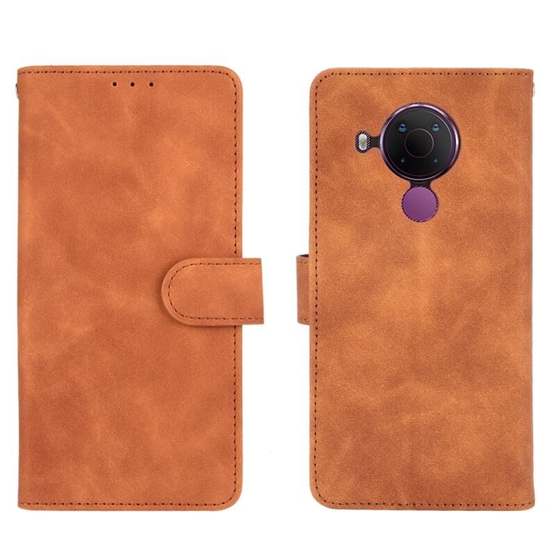 Για Nokia 5.4 Αμιγές χρώμα δέρμα αίσθηση μαγνητική πόρπη οριζόντια Flip μοσχάρι υφή PU δέρμα υπόθεση με κάτοχο & υποδοχές καρτών & πορτοφόλι (καφέ)