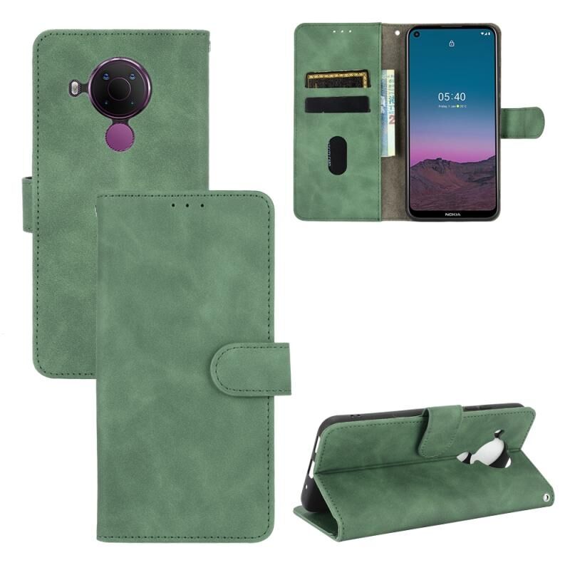 Για Nokia 5.4 Αμιγές χρώμα δέρμα αίσθηση μαγνητική πόρπη οριζόντια Flip μοσχάρι υφή PU δέρμα υπόθεση με κάτοχο & υποδοχές καρτών & πορτοφόλι (πράσινο)
