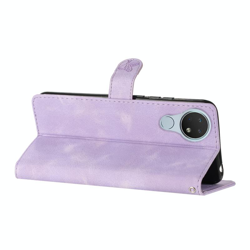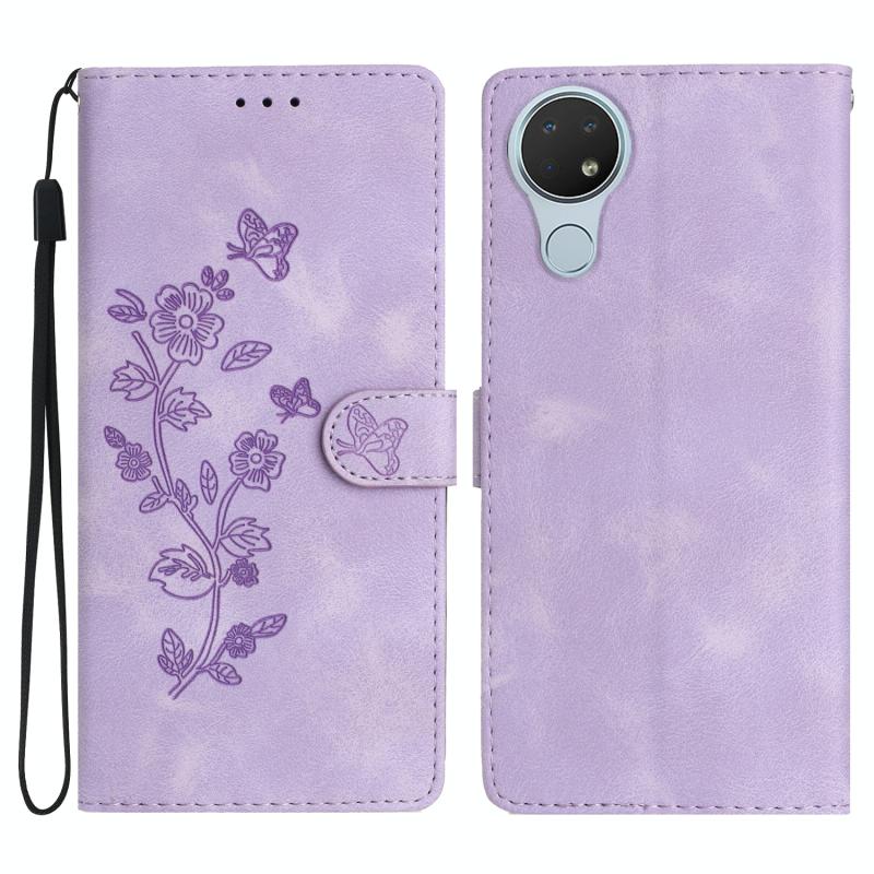 Θήκη τηλεφώνου από δέρμα με ανάγλυφο σχέδιο λουλουδιών και πεταλούδων για Nokia 6.2 / 7.2 (Μαύρο)