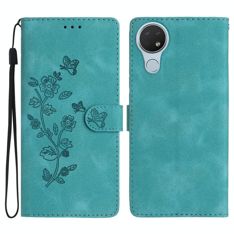 Θήκη τηλεφώνου από δέρμα με ανάγλυφο σχέδιο λουλουδιών και πεταλούδων για Nokia 6.2 / 7.2 (Μαύρο)