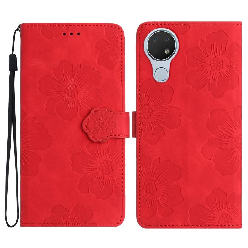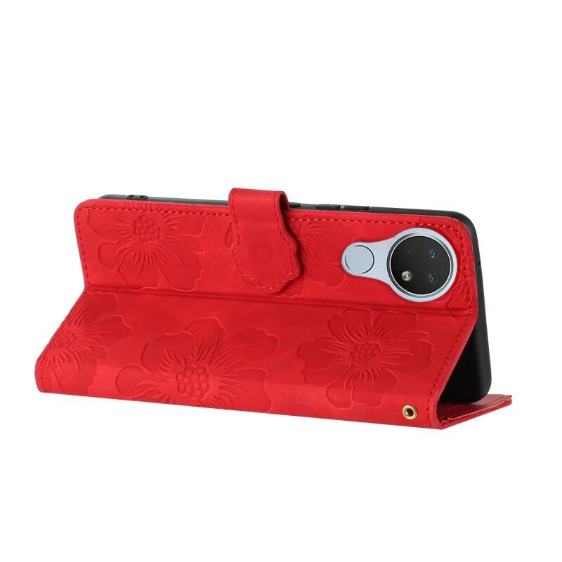 Για Nokia 6.2 / 7.2 λουλούδι ανάγλυφο μοτίβο δερμάτινη θήκη τηλεφώνου (κόκκινο)