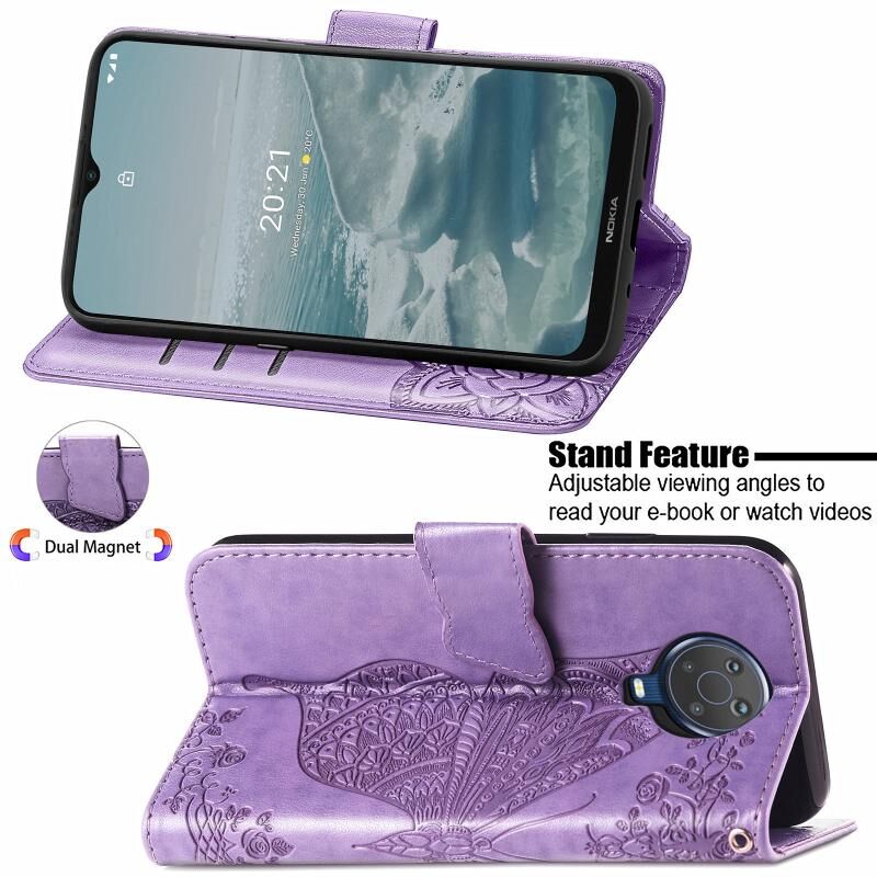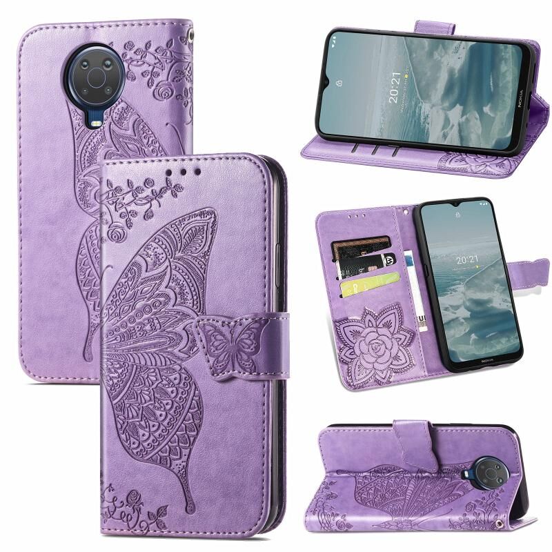 Για Nokia 6.3 πεταλούδα αγάπη λουλούδι ανάγλυφο οριζόντια Flip δερμάτινη θήκη με βραχίονα / υποδοχή κάρτας / πορτοφόλι / κορδόνι (Light Purple)