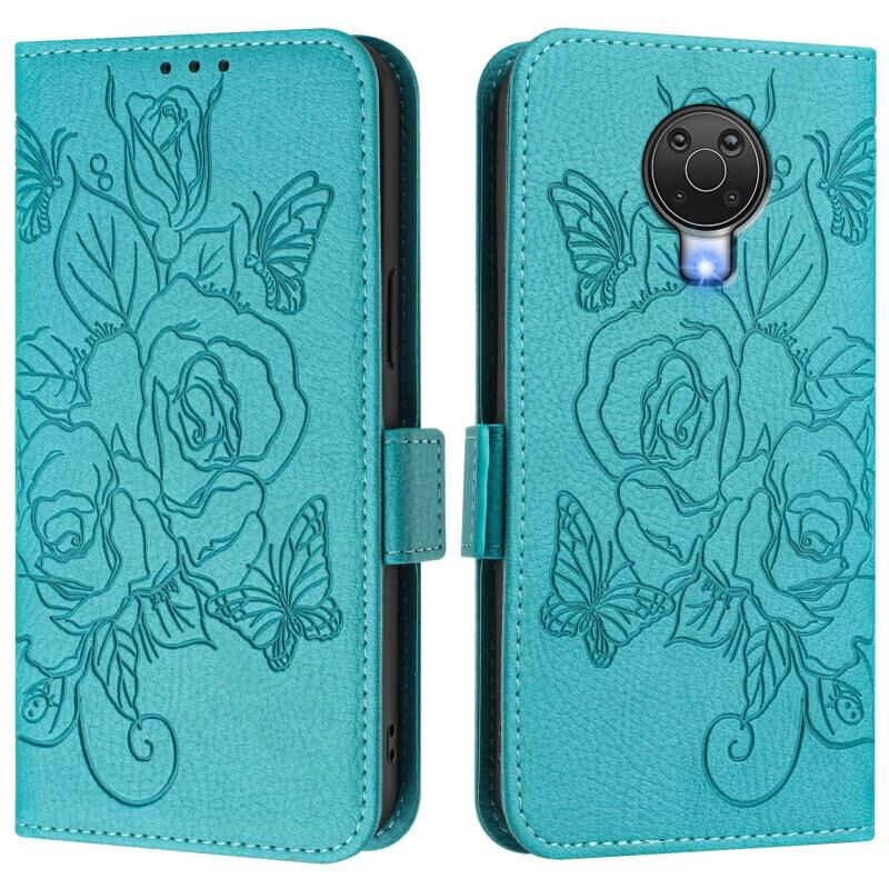 For Nokia 6.3 / G20 / G10 Embossed Rose RFID Anti-theft Leather Phone Case(Light Blue)