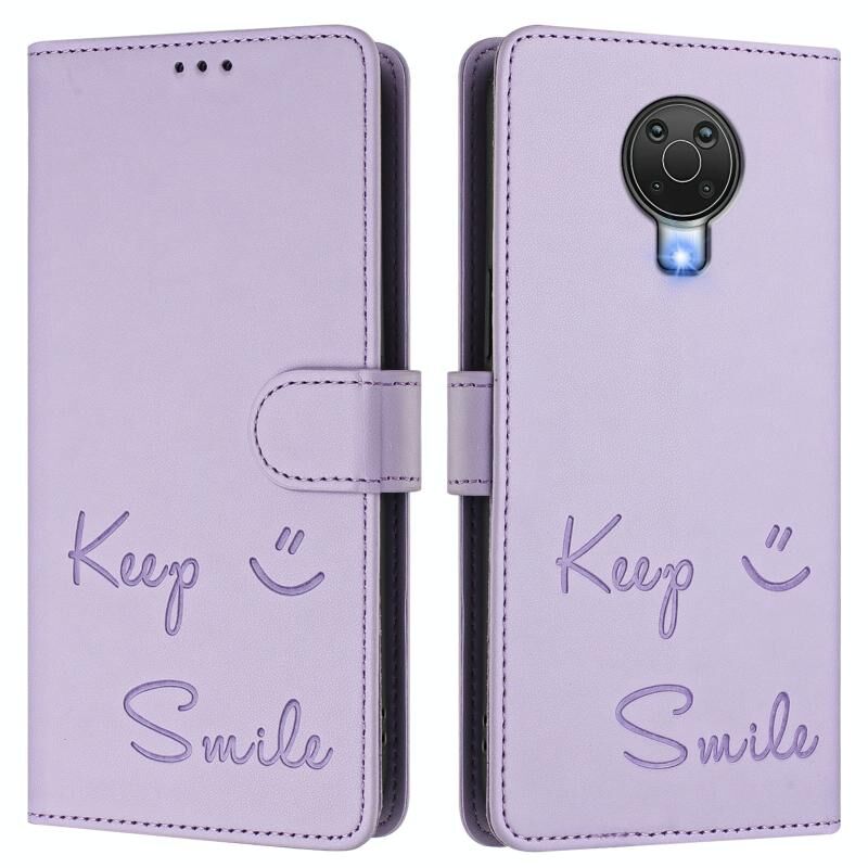Για Nokia 6.3 / G20 / G10 Χαμόγελο ανάγλυφο RFID δερμάτινη θήκη τηλεφώνου (Light Purple)