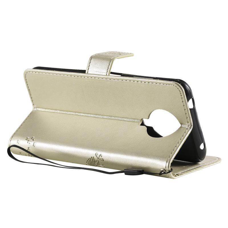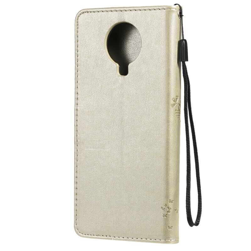 Για το Nokia 6.3 Tree & Cat Pattern Pressed Printing Horizontal Flip PU Leather Case με θήκη & υποδοχές για κάρτες & πορτοφόλι & κορδόνι (χρυσό)