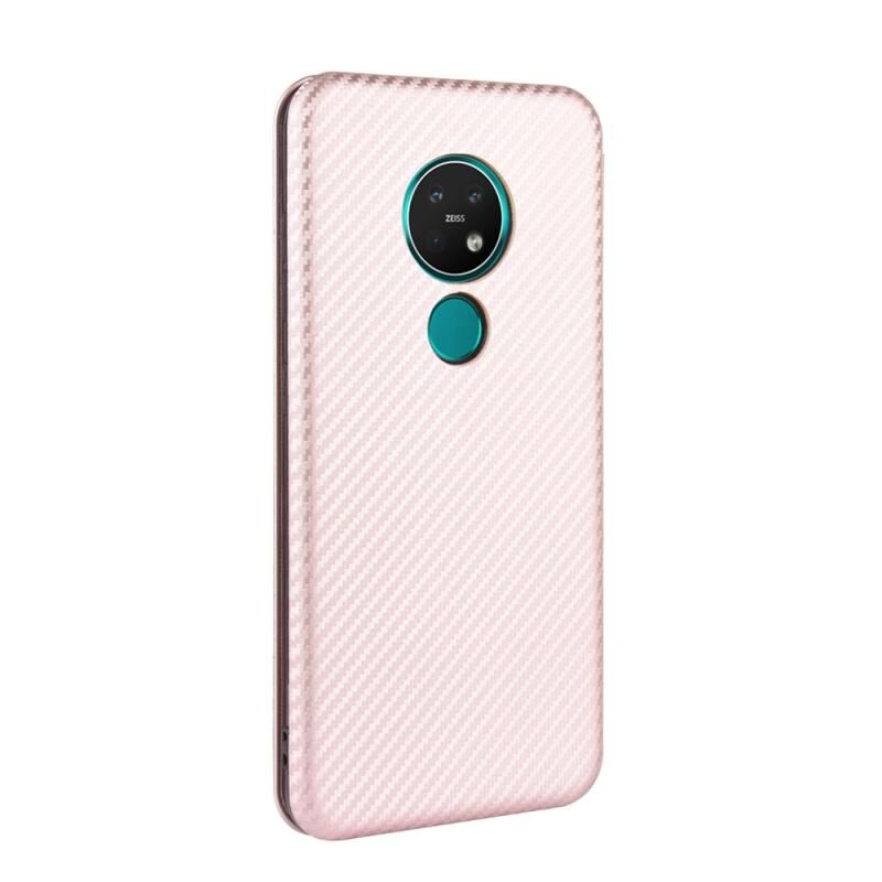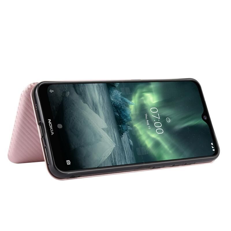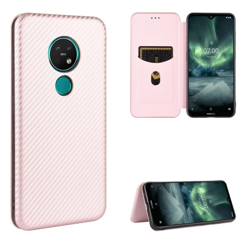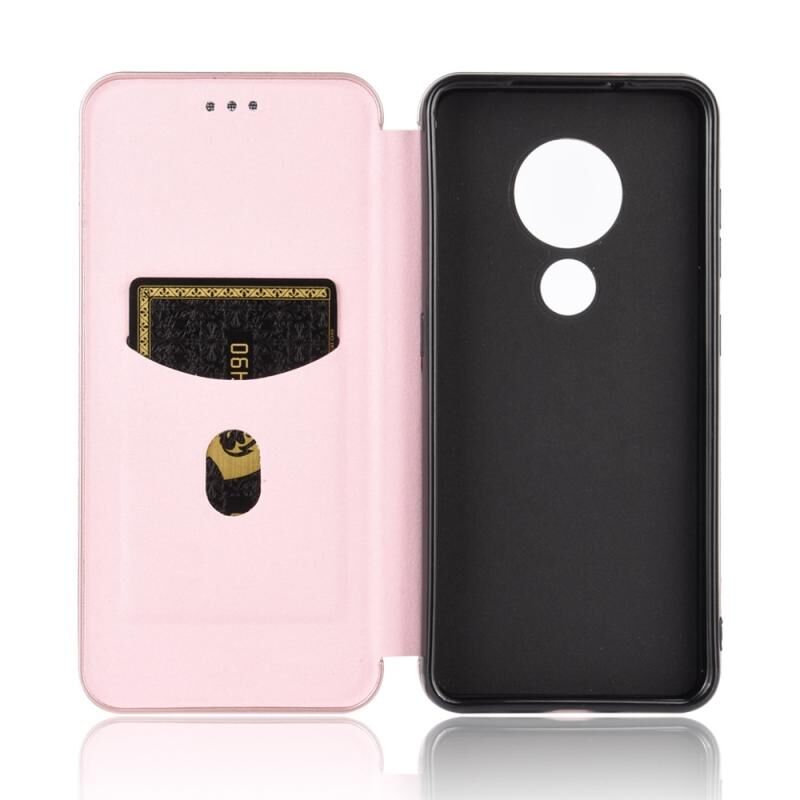 For Nokia 7.2 & 6.2 Carbon Fiber Texture Horizontal Flip TPU + PC + PU Leather Case with Card Slot(Pink)