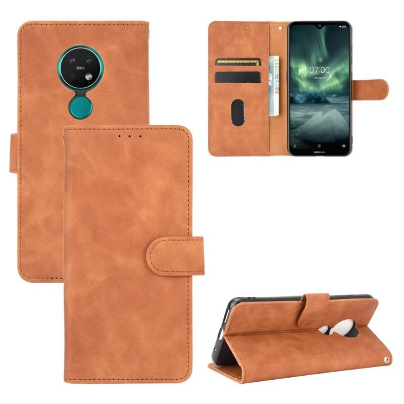 Για Nokia 7.2 & 6.2 Solid Color Skin Feel μαγνητική πόρπη οριζόντια Flip μοσχάρι υφή PU δέρμα υπόθεση με κάτοχο & υποδοχές καρτών & πορτοφόλι (καφέ)