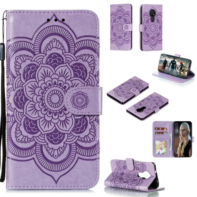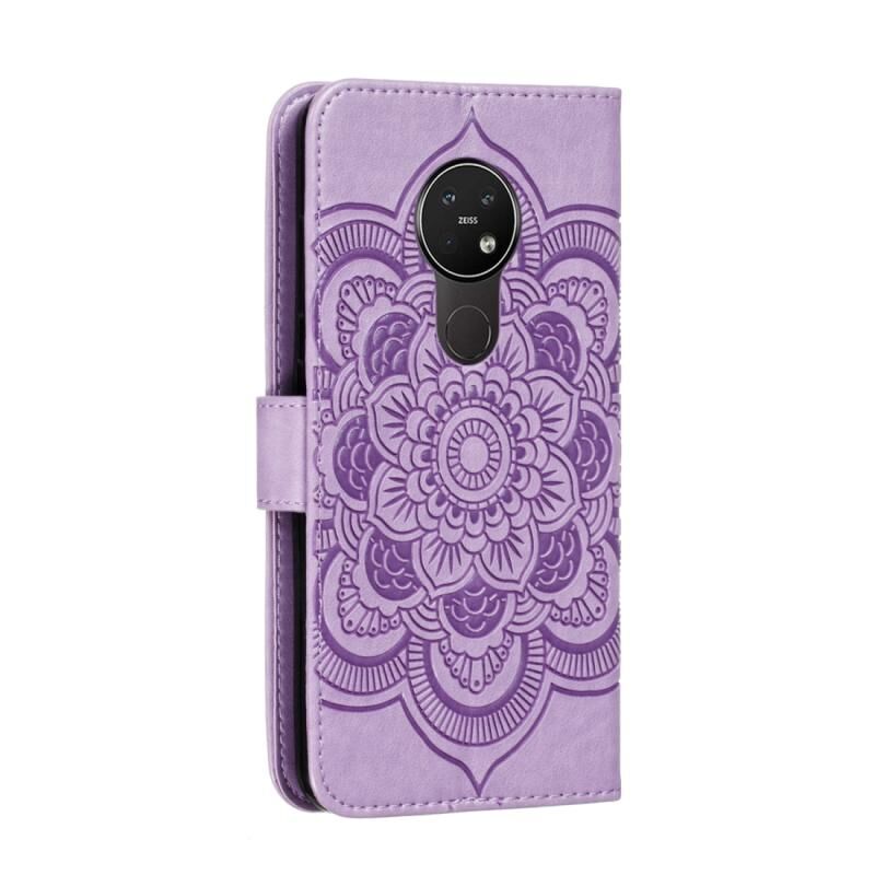 Θήκη δέρματος οριζόντιας αναδίπλωσης για Nokia 7.2 με μοτίβο Mandala, ανάγλυφο, με βάση στήριξης & υποδοχές καρτών & πορτοφόλι & κορνίζα φωτογραφιών & κορδόνι (Κόκκινο)