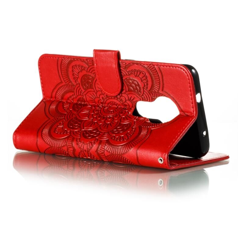 Θήκη δέρματος οριζόντιας αναδίπλωσης για Nokia 7.2 με μοτίβο Mandala, ανάγλυφο, με βάση στήριξης & υποδοχές καρτών & πορτοφόλι & κορνίζα φωτογραφιών & κορδόνι (Κόκκινο)