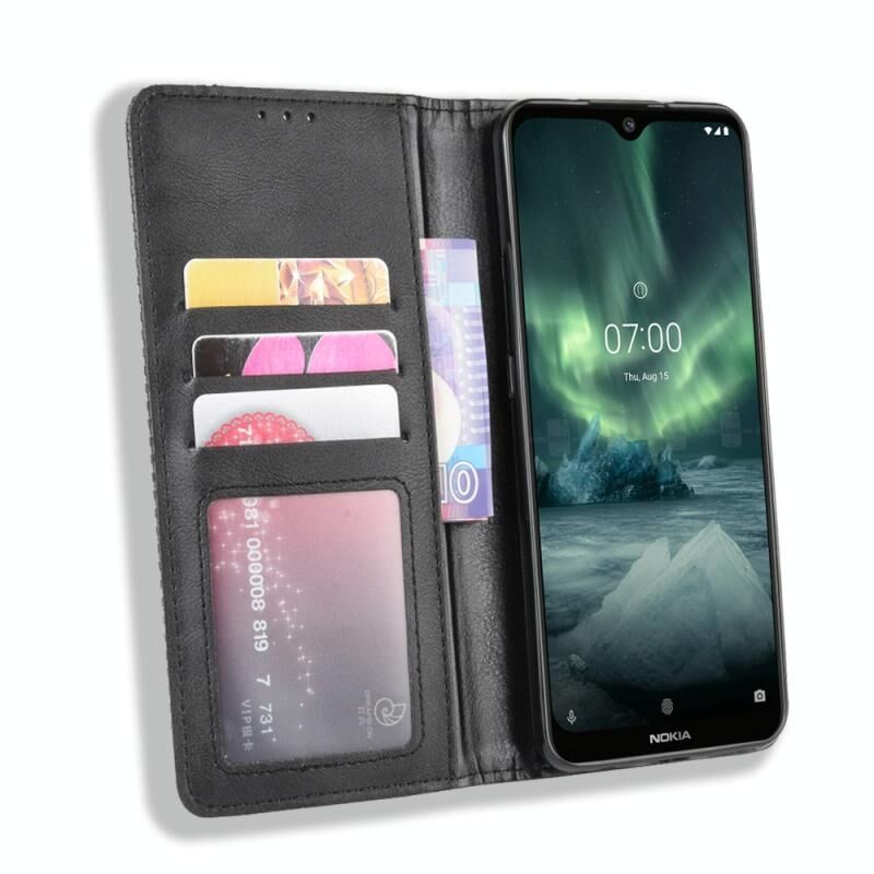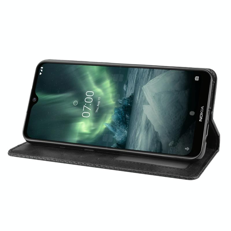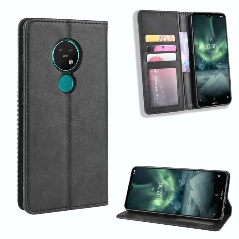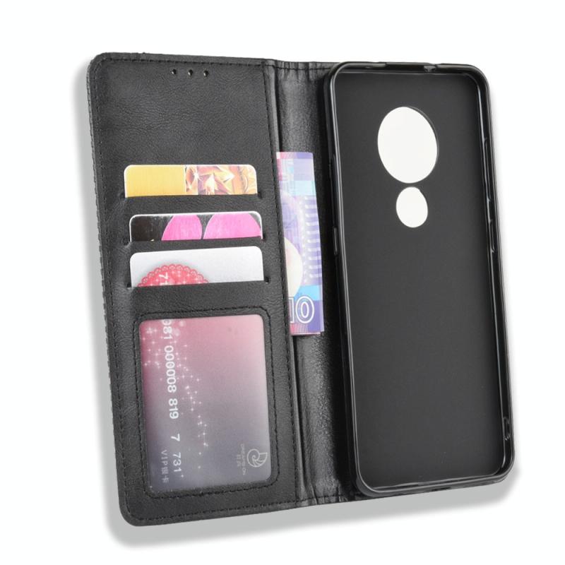 For Nokia 7.2 / Nokia 6.2 Magnetic Buckle Retro Crazy Horse Texture Horizontal Flip Leather Case , with Holder & Card Slots & Photo Frame(Black)