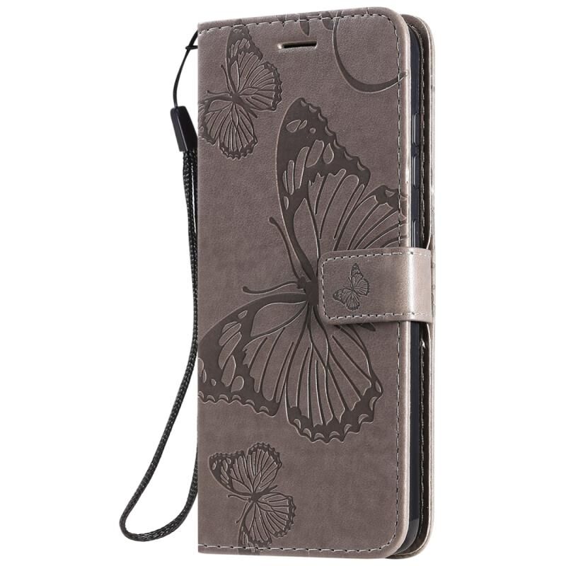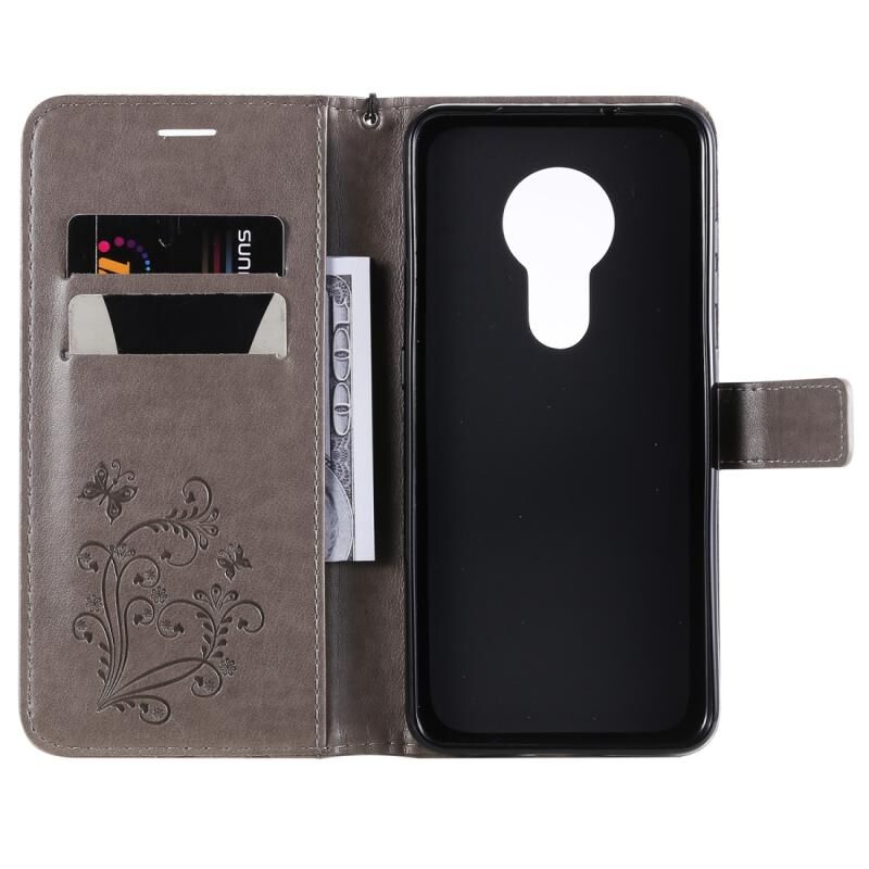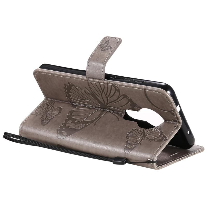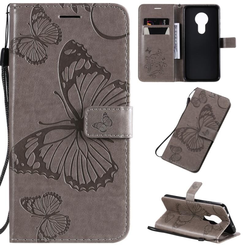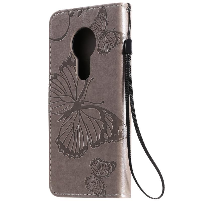 For Nokia 7.2 Pressed Printing Butterfly Pattern Horizontal Flip PU Leather Case with Holder & Card Slots & Wallet & Lanyard(Gray)
