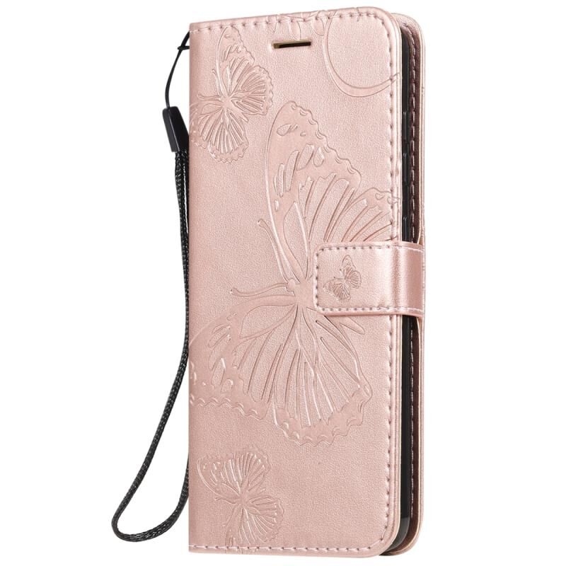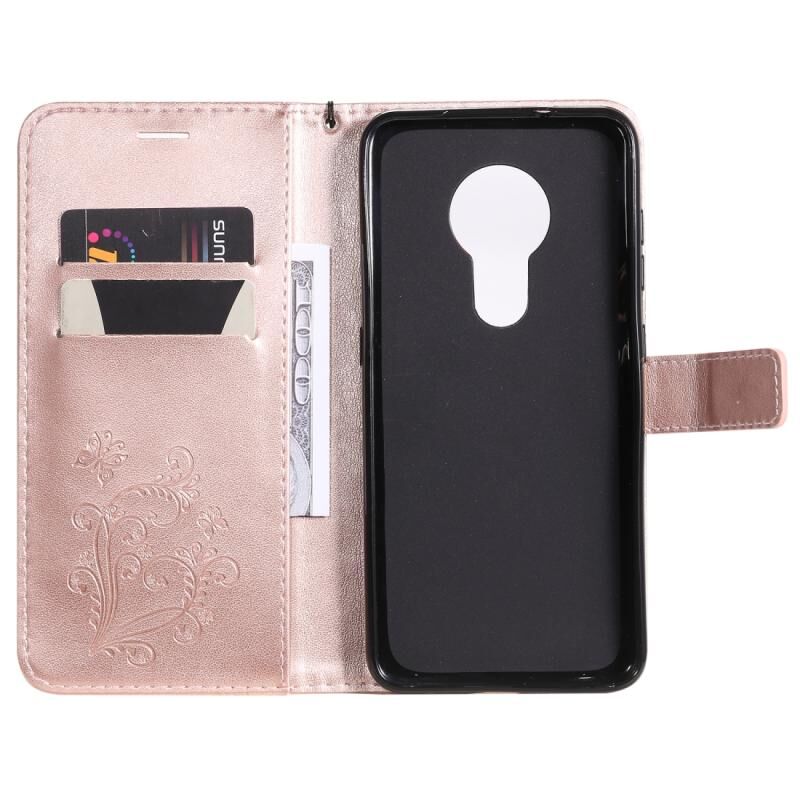 Θήκη για Nokia 7.2, με εκτυπωμένο σχέδιο πεταλούδας, οριζόντια αναδίπλωση, από δερματίνη PU, με βάση στήριξης, θήκες για κάρτες, πορτοφόλι & λουρί (Χρυσό Ρόδινο).