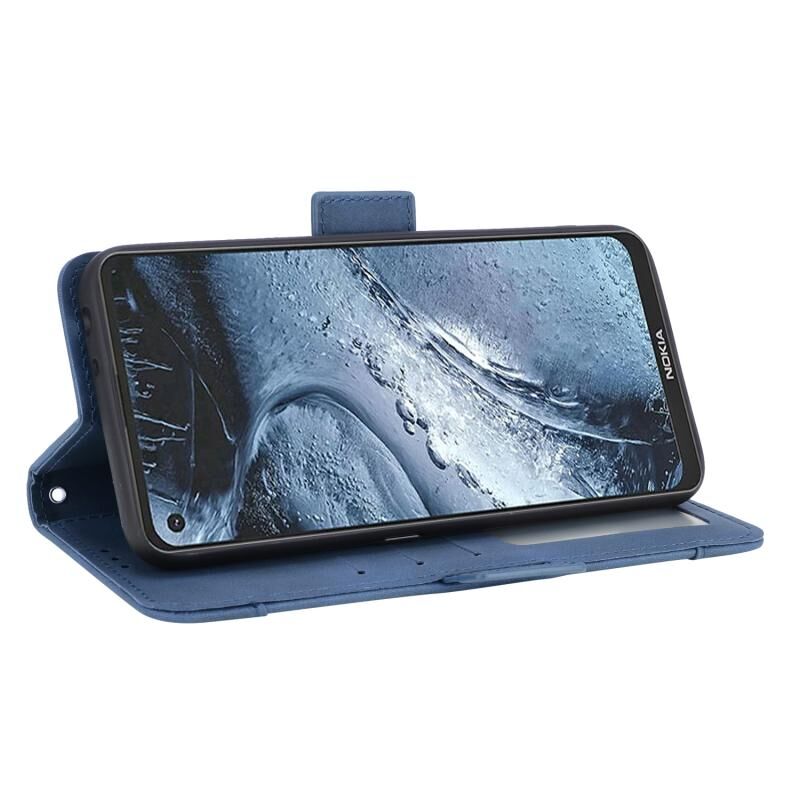 Για Nokia 7.3 Skin Feel μοσχάρι μοτίβο οριζόντια Flip δερμάτινη θήκη με υποδοχή & υποδοχές καρτών & πλαίσιο φωτογραφιών (μπλε)