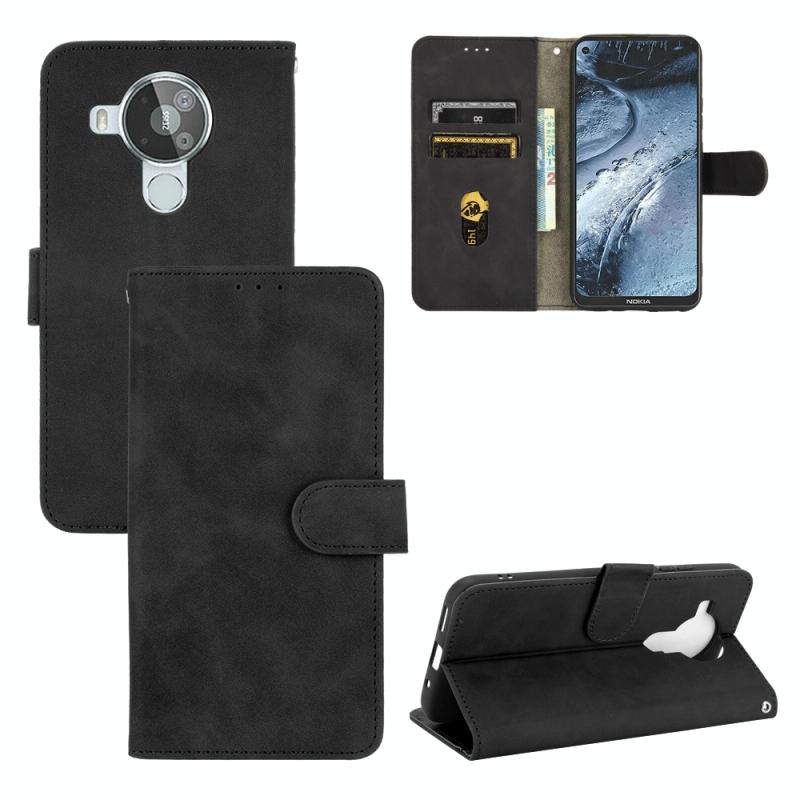 For Nokia 7.3 Solid Color Skin Feel Magnetic Buckle Horizontal Flip Calf Texture PU Leather Case with Holder & Card Slots & Wallet(Black)