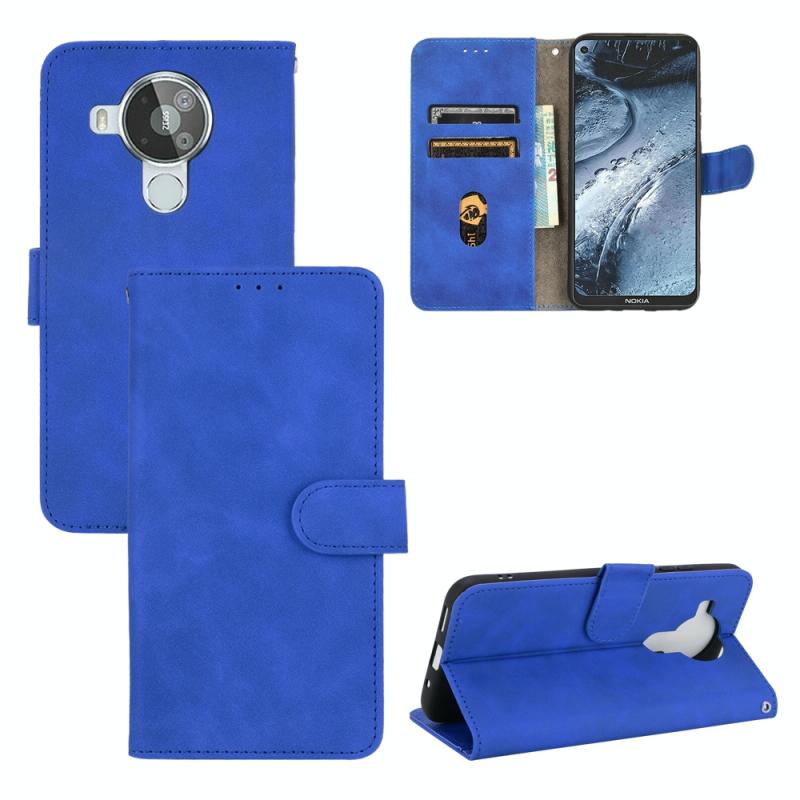 For Nokia 7.3 Solid Color Skin Feel Magnetic Buckle Horizontal Flip Calf Texture PU Leather Case with Holder & Card Slots & Wallet(Blue)